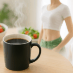 「猫がコーヒーを飲んでいる、水彩画風のイラスト」